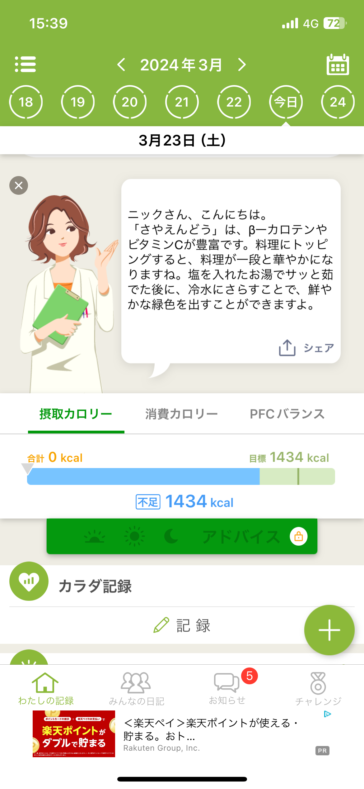 などなど、色々あると思うけど、その中で先ずは、食べ物を意識したいと思って、アプリをインストール。
