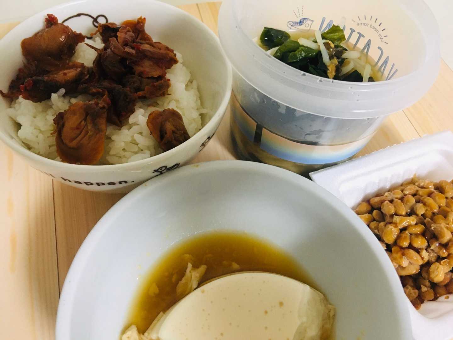 こんにちは(^O^) 10/20(水)は、お母さんがコタツを出して欲しいって言うから、コタツ掛け布団を干して掃除機やら掃除やらをして、コタツを設定しました✨ コレから寒くなるから、早めに用意するのは、良い事だよね😊✨ 10/20 朝ごはん ・ご飯 ・塩ウニ瓶詰 ・もやしのワカメ味噌汁 塩ウニだけど、ウニの味が口の中に広がって凄く美味しい💕 何ヶ月か前にいただいて冷凍してたのを見つけたんだけど、本当に宝物を見つけた気分になりました😁 本当にめちゃくちゃ美味しい💕 (*≧∀≦*) お昼ご飯 ・無し 間食 ・パウンドケーキをふた切れ ・ヨーグルト ・豆乳バナナ 夜ご飯 ・もやしのワカメ味噌汁 カフェオレ飲んで眠りました😊💕
