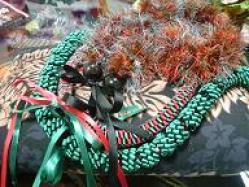 プリザーブドフラワーのとてもかわいいリースがウイラニに届きました。私がヨウコさんに発注させていただいたクリスマス用のリースです☆一番上にサンタさんが乗ってるんですよ~♪ウイラニもツリーも買ったし、CDも快調だし、このリースがあれば雰囲気アップ間違いな~し♪ヨウコさん、本当にありがとうございました。ハワイのクリスマスはとっても南国的で私は好きです。鉢以外にみたことのない真っ赤なポインセチアもワンサカ群生していますし。。。昨年のハプナビーチプリンスはポインセチアの鉢が何百と合わさった巨大なツリーでした。今年も楽しみです。