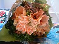 毎週月曜日にバンタンに講師として出向くようになってから月曜の大好きなエアロビに行かない日が多くなった。時間的には頑張ればいけるのだが、かなりハードスケジュール!その日でなく、週の途中で疲れてしまうのだ(泣)でも今日は素敵な朝の日差し誘われて久しぶりにステップのクラスに参加!いい汗をかきました~11月に入ってウイラニでも1年ぶりにハワイアンCDの再登場!なかでもこの3枚が今の旬。右のNa LeoのCDはリリcoiのハワイの友人、カーラが、ウイラニのワークショップの卒業式で踊ってくれた『A Chiristmas Wish』という歌が最後に入っている。想い出がある歌はやっぱり心に響きます♪ハワイ島には同じ時間を共有した友人たちがいるから私にとって特別な島なのです。もうすぐハワイのユカリちゃんをはじめ、友人達に会える。それが11月に入ったらとても楽しみになってきました今回のハワイでも素敵なCDをゲットできたらご紹介しますね。今日は女性雑誌Oの編集長であるKさんと久しぶりに企画の打ち合わせでお会いした。リリcoiの誕生日&ウイラニ4THのお祝いにこんな素敵な花束をいただきました。ありがとうございます☆やはり1日中動きすぎてスタミナ切れなのでまた明日☆