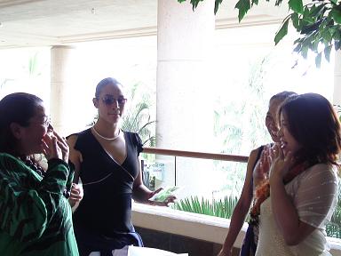 マナちゃんはウイラニのアドバンスワークショップへ行った方ならご存知のハウナニの愛娘。ハワイではManaとは生命すべてに宿るパワーを意味するすばらしい名前だ。私がマーガレット・マチャド先生のところで勉強しているとき、彼女はハウナニの片足にまとわりつく小さな女の子だった。みるみる成長していく彼女をみていくとティーンエイジャー時代を懐かしく思う今日この頃だ。とてもシャイな彼女だが、バスケットボールプレイヤーとしては大学からの引き合いもくるほど。ワークショップにくる子供の面倒はよく見てくれるし、昨年12月にハプナのWEDDINGにハウナニと来てくれたときの上記の写真は(ミホさん曰く)『セレブのお忍び写真みたい~』日本語も勉強しているという彼女、話してみてといってもシャイであまり話してくれたことはない(笑)お母さんのハウナニのほうが現段階では格段に学習能力が高く、片言の日本語をどんどん覚えていく。私の増えない単語力と大違い!先日ハウナニの家で彼女が急にシェイプアップダンスのDVDをかけて踊りだした時、エアロビ歴10数年の私は『まだまだついていくぞ~』と30代の威信をかけて?最後まで彼女についていった。マナちゃんの軽やかなステップや音感には程遠いけれど(笑)同じく30代のミリアムも私と同様最後までついてきた(30代連盟)今回は名古屋のチエちゃんのお嬢さんたちの世話もしてくれて、子供達もとってもなついていた。マナちゃんの花嫁姿、きっとキレイだろうな。。。