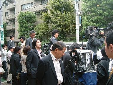 この1ヶ月の愛育病院前の喧騒も今日が最終日!前日の14日からリリcoiは決意していた。『天皇さまも雅子さまも全部仕事中でみられなかったから、明日は必ず行列に参加する!』そして15日の決行の朝がやってきた☆前日までの冷たい雨も止み、行列日和!(^^)!一度ウイラニへいって諸々の準備をしたあと、『退院といえば午前中』という予測のもと早速ウイラニから徒歩1分の愛育病院前へカメラをもってのりこんでいた。すでに報道陣や近所の方で人がいっぱい。まずは子犬さんの提案のとおり入口の反対側に立ってみた。早速近所の初老の女性が話しかけてきてくれた。『あなた、今日は宮様たちは高速にのるからここじゃ見えないわよ』ふんふん、なるほど。有栖川公園の入口に向けて人が沢山いる。彼女は天皇陛下と皇后様がいらしたときも見ていたとか、大先輩だ!その時は信号は止まり、警察の方々が交通規制にはいったとのこと。彼女がいうには、愛育病院の近くのビルの屋上は、ずいぶん前からマスコミによって一般人が目の飛び出るような高値で『予約済み』となっていたそうだ。場所によっては1日で10万近くの高値という噂。。。元々地価の高い南麻布、さすがだ。彼女との会話を楽しんだあと、腕に腕章をだれているマスコミのカメラマンに退院が何時ごろか聞いてみた。なんと『午後』とのお答え!ゲゲ!まだ10時半、これは1回帰って仕事を片付けてこなくては。。。と一度その場を立ち去った。 一仕事終えて私が戻ってきたのはお昼をまわっていた。愕然、朝の比ではないほどの報道陣とニッポンの国旗が長い列になって旗めいていた。ヤバイ!早く並ばなければと足早に急ぐ。報道の方々の中にはテレビでよく知っている人もいて、その人のそばにいて緊張感を楽しんでいたリリcoiの肩をたたく人がいた。振り返ると警察官。何の用??と思うと『こちらは報道の方専用の場所ですので、お見送りの列に移動していただけませんか?』『。。。すいません』列の最後尾に移動。すると病院内から拍手と、そして観衆のドヨメキが渦のようになって聞こえてきた。紀子さまたちの登場だ! 車はとてもゆっくりと、そして国民である私達の祝福を受けてお子様を抱いてお元気そうな紀子さまの笑顔が車の窓際からこぼれていました。万歳三唱の声の中リリcoiが撮影した写真です。残念ながら秋篠宮殿下は写っていませんが、とても幸せな気持ちになりました。健やかなご成長をお祈り申し上げます。こうして愛育病院の喧騒の日々が終了したのでした。
