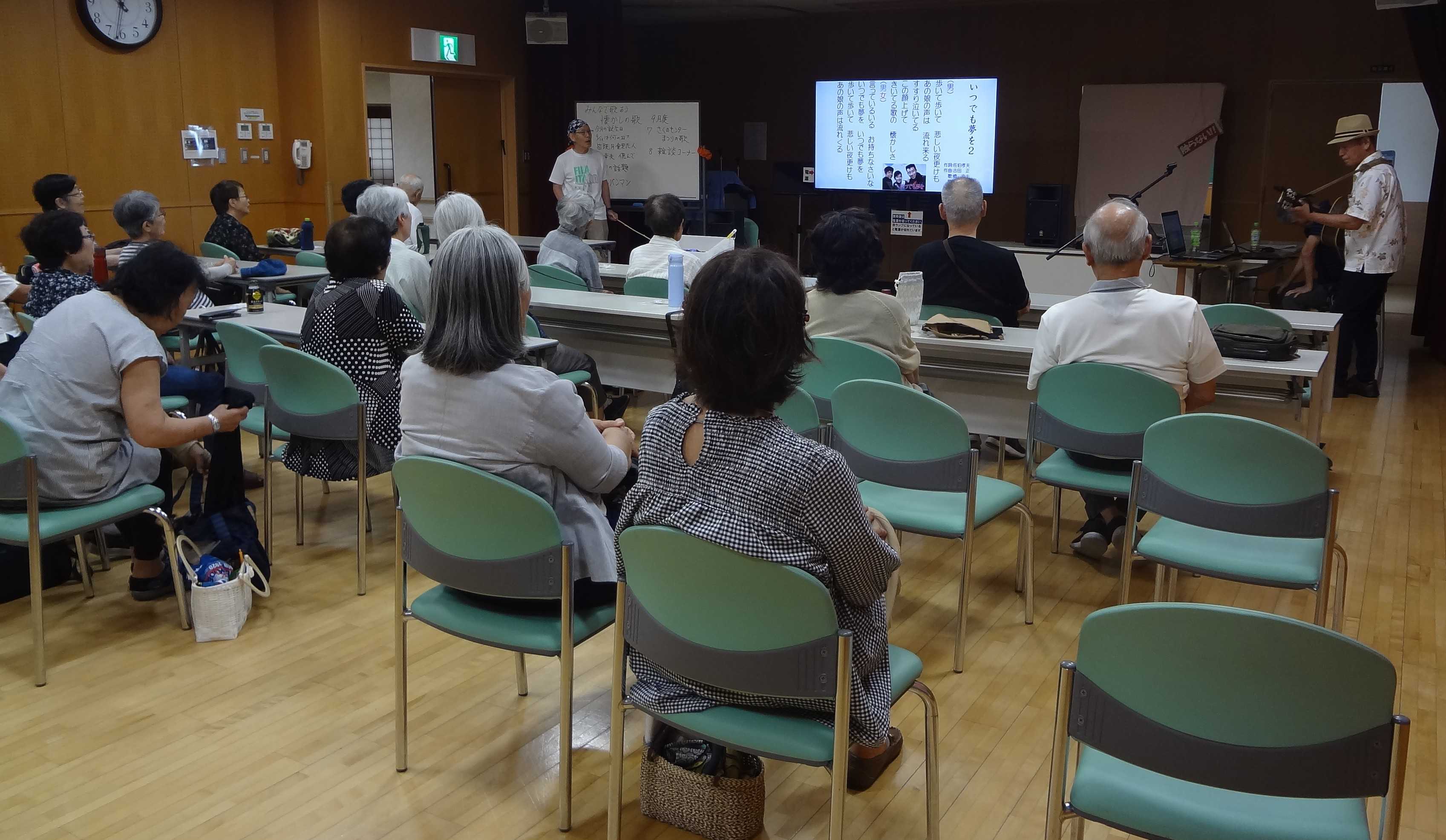 昨日は毎月第2土曜日午前10から「作野福祉センター」で開かれている「作野懐かしの歌声サロン」に行って皆さんと一緒に「13曲」歌って来ました参加者h高齢者ばかり20名懐かしい歌ばかりなので皆さん歌えます前方スクリーンに曲に関するいろんな情報が映し出されるので楽しくなります1 浜辺の歌2 下町の太陽3 いつでも夢を4 君だけを5 青い山脈橋幸夫を追悼して歌いました6 潮来傘2025年前期のNHK連続テレビ小説「あんぱん」は「やなせたかし」と縁の深いものでしたね7 アンパンマンの歌8 アンパンマンマーチ9 想い出の渚10 高校三年生 11 二人の銀座(作曲:ベンチャーズ 作詞:永六輔) この歌を歌った二人の歌手が映しだされ会場の皆さんに「誰でしょう?」と尋ねたら「和泉雅子と山内 賢」と当てられてしまいました12 憧れのハワイ航路13 真っ赤な太陽参加者は、主催者「山田芳郎」さんのファンの方ばかりですから、アッとホームの雰囲気でした