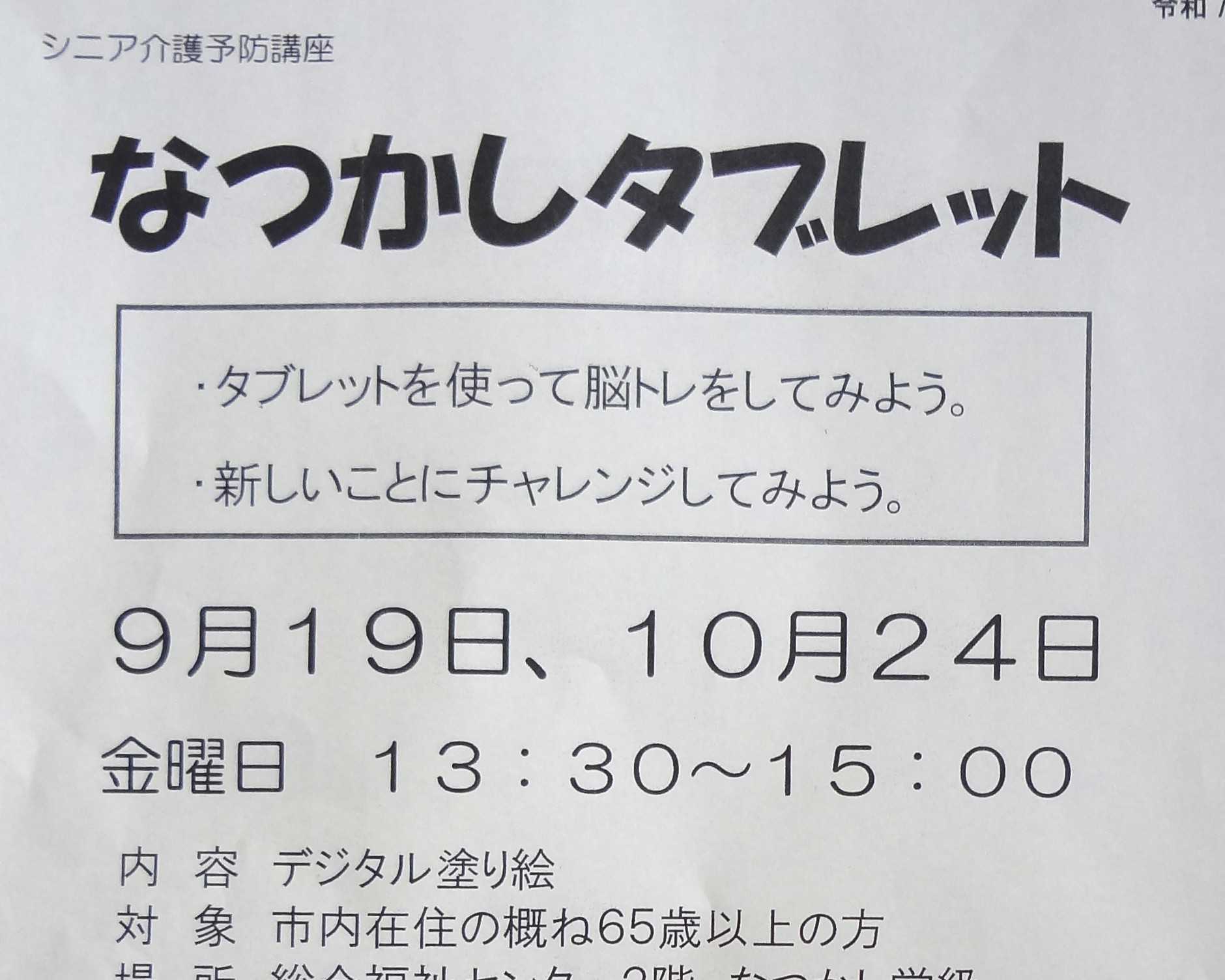 金曜日(19日)楽しい講座を受講して来ました「タブレット」にインストールされたいろんな「絵」から1つ選んで塗って行くカクジイは、これを選びました下部の番号を「タッチペン」でタップすると絵に数字が表れ、同じ数字をタップすると塗られて行きます例えば上記数字の「6」の部分が全部塗り終わると「6」が消えます数字が全部、消えたら完成です完成した絵がこちらです数字が「30」程でしたので「30分」でできました1時間半の講座で、まだ「50分」残ってましたので2枚目に挑戦しました。2枚目は数字が「80」以上あって、あと5つ、というところで時間切れになってしまいました残りは次回10月24日にやることになりましたこれっ、面白いし楽しいですよ