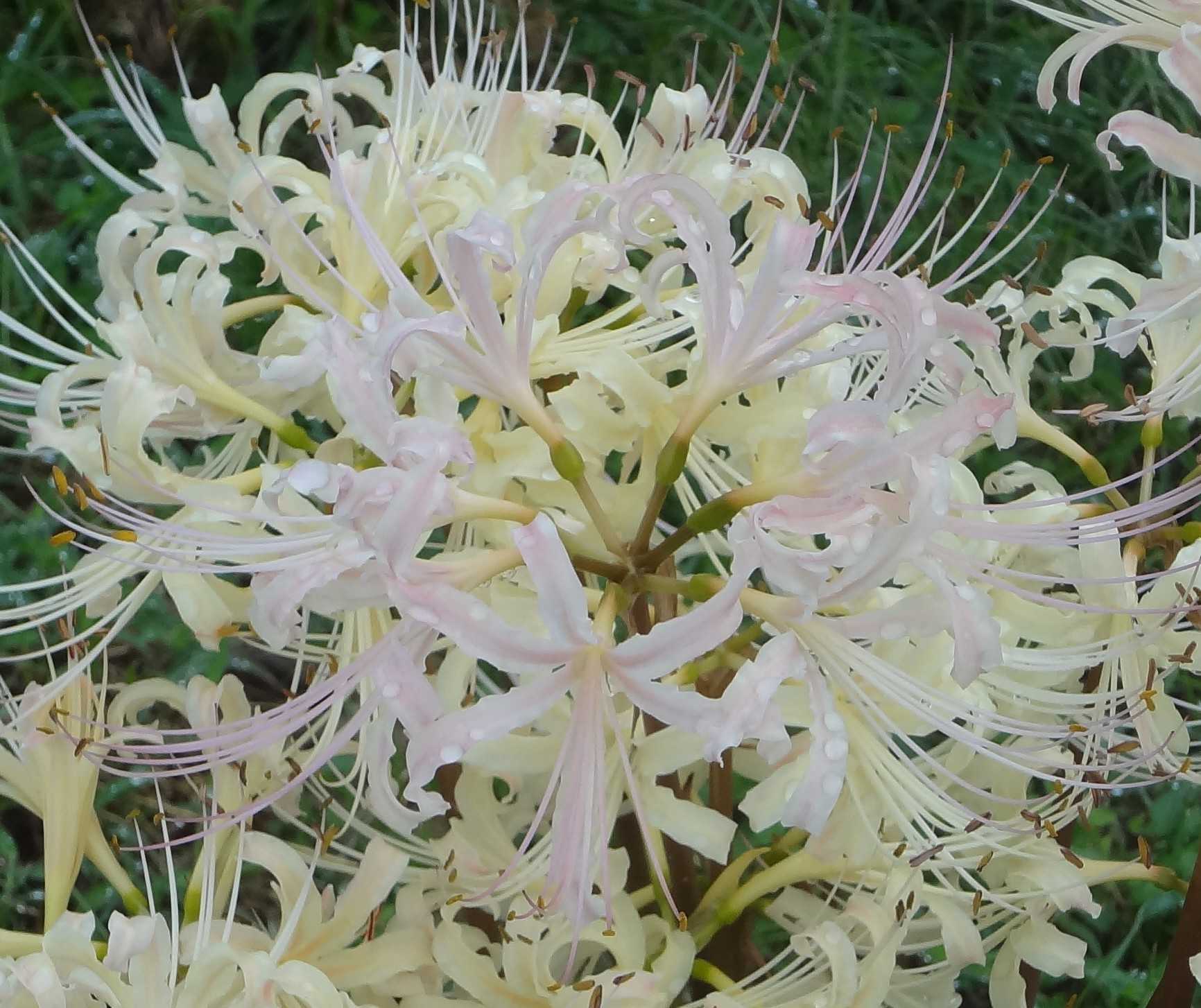 早朝ジョギング中に感動の「白花彼岸花」に遭遇できました「薄~いピンク色」初めて見ましたでも・・・3日後に見に行ったら普通の「白花彼岸花」になってました不思議です
