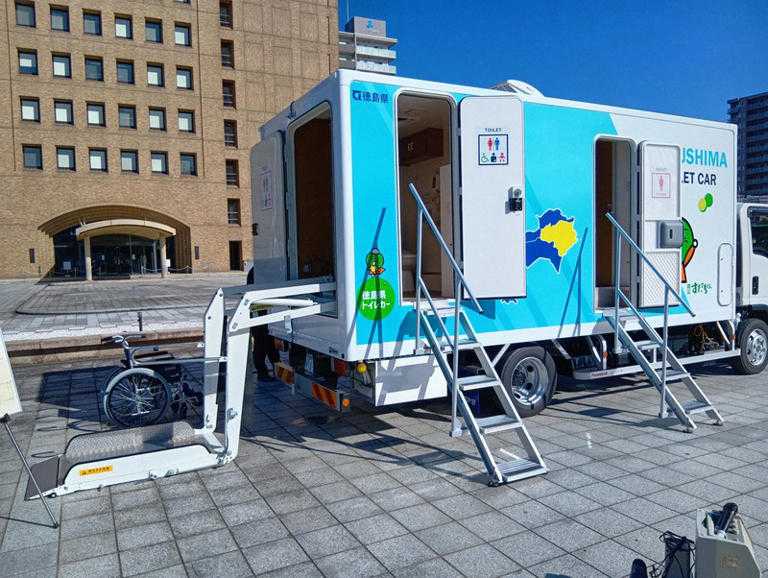 ネットで凄いトイレを見つけました「被災地用トラックトイレ」です男性用は「洋式2+小便器」女性用は「洋式2」で他に「多機能(誰でも利用可)」1、となっています「空調付き」です「徳島県」が導入しました貯水用タンクの容量は、約700リットル標準的な使い方なら「300~400回」使用できるとのこと被災地でも「水」を補給したり「汚水」を抜けば、繰り返し使えるそうです「価格」は「2,600万円」前後導入する他県もあるようです