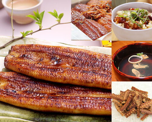 父の日ギフトによさそうです。ってか自分が食べたい?うなぎの長蒲焼き 2本(真空パック) ※たれ・粉山椒各3袋付きうなつくし(うなぎ混ぜご飯・うな茶漬けの素) 1袋うなぎの佃煮(しょうが風味) 1箱 うなぎぼーん(しょうゆ味) 1袋うなぎのきも吸い 2袋 合計5種類7点 ※簡単な料理レシピ(栞)付き