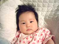 生後2ヶ月半も過ぎて、もっぱらの遊びは息の吹きかけ!お膝に乗せて、ふ~と顔に向かって息を吹きかけると「ふう~」っとか言って驚いたような喜んでるような顔をします。顔にかかる感覚が面白いのでしょうか!パパは「福が飛ぶ」から止めてくれーと言うので、昼間2人きりの時の秘密の遊びになっています。Babyのマイブームは指しゃぶり?指なめ?。2週間前くらいまではやっとこぶしをなめているって感じだったのに、もう親指と人指し指を舐められるようになって、少ししゃぶることも出来ています。指しゃぶりは歯並びが悪くなるとか言われますが、あんまりよくないのかな~。赤ちゃんがまずやる「手の存在」をわかる仕草って聞いたので、ほっといているのですが。もっと月齢を重ねて本格的な指しゃぶりはほどほどがいいのでしょうか?!なんだか色んなことが段々できてきて、子育てがもっと楽しくなってきました!首も据わり始めて抱っこも楽ですが、体重が5キロを超えて腰も痛いこの頃です。