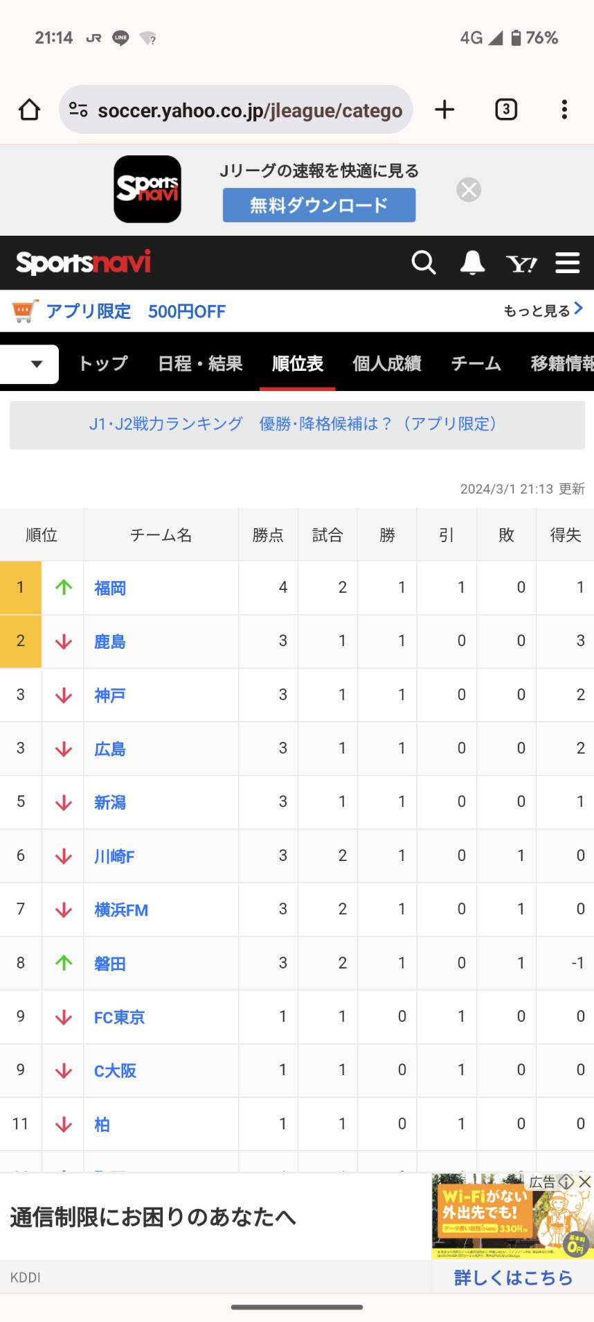 遠野大弥 ベススタ好きすぎやろ?得点王取りたいやろ?戻ってきたいやろ?前半、藤本が宮市をぶっちぎったりして、今日は行けそう!と思ったところに冷や水をかぶせたのは、大弥。うまかったね。うちの村上から点を取るなんてなかなかのもんだよ。試合は、左サイドの藤本のスピードが序盤から制圧していて、何度も決定的なチャンスを作ってた。横浜は厄介だttのは大弥だけだったような気がする。連戦の疲れか、こぼれ球の第一歩の動きがマリノスらしくない。そして、やっとやっとやっとはいった同点弾は藤本のペナルティーエリア外からの強烈シュート。シュートコースが、光の道みたいにきれいに開いていたよね。後半は、田代に代わって、上島。これは、審判対策とみた。かなり怪しい審判だったので、下手すると田代2枚目のイエローもあり得た。藤本に代わってはいったのは、またもやスピードスターの岩崎。シャハブに代わってナッシム。名古に代わって重見。さらにギアが上がった気がする。紺野の敵陣深くからの独走ドリブルがスタジアムを温める。オフサイドだったけどナッシムに預けてゴールまで迫った。そして、その直後、見木が拾って、見木が決めた。うまーーーー!!!キーパーとDFの間に出した前嶋の早いクロスが秀逸。見木の後ろにもしっかり重見が詰めていた。何度も何度も決定機はあったけど、結局最後の横浜FCのコーナーキックラッシュをしのいで、1点差勝利。ハラハラやドキドキを味わえる面白い試合でした。(でも、たまには、複数得点差リードで、足組んでふんぞり返って、ビール片手に試合を見てみたい)祝勝会&首位記念会は、舞鶴のビストロ・パブ・エールズ。ここのビールは、ほんとにおいしい。そして、パブ飯とは侮るなかれ、食事が抜群においしい。幸せな土曜日でした。きっと、日曜日に町田に抜かされるよなーなんて思ってたら、浦和が頑張ってくれて。とりあえず水曜日までは「暫定首位の福岡です」って言える。サイコー~。暫定首位は、去年の3月1日以来。(スクショと取ってたので、アップします)この時も相手はマリノス。やっぱり浮かれて、カンピオーネをサポーターが歌って、奈良ちゃんにたしなめられたのも様式美でしたね。今年は、その役目を上島がやってくれるのかな。サポーターは勝たせたいと思っている。クラブは勝ちたいと思っている。見てる方向が一緒なのは、過去のアビスパを知ってるとぼんとに幸せだと思う。