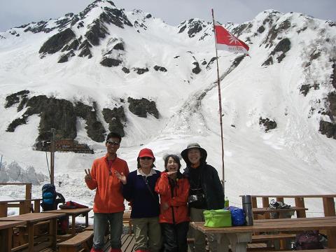 あ~~!!毎週遊びに行ってて更新が間に合わないよ~!とりあえず・・・4月21・22日の赤岳雪掻き登山珍道中・最終編です。 サクサクと地蔵を下ります。onoちゃんと師匠。鼻血君と師匠。やっぱり尻セードっす!鉱泉のアイスでパチリ!去年の12月24日此処で初めてアイスに登ってから4ヶ月で私の「山行きたい病」は治るどころか悪化しているのではないでしょうか?毎月赤岳天望荘に泊まってます。(笑)毎週雪山に登ってます。(笑)八ガ岳山荘のせっちゃんの顔を見ないと禁断症状が現れます。そんな私は昨日クライミングジムの帰り・・・差し入れ持っていそいそと彼女に会いに山荘へ・・・5分位の逢瀬でしたが、お互い抱き合って感動の抱擁~~!笑 ~~~~~~~~~~~~~~~さてさて、赤岳登山隊最大の難所に遭遇しました。なんなんだ~~!!こんなナイフリッジは見た事がないぞ~~!!滑落したらヘリ要請だ!川に一気にドボンだ!笑バランス整えて歩きます。ちょっとピッケルでバランスとっちゃいましたが・・・なんとか・・・さっすが元体操選手!県大会では平均台でロンダート・バク転・バク宙で見事着地失敗しただけの事はある。(爆笑) そして、やはり下山に事故が多いと言われますが・・・同じ場所で3人共々アイス状態の登山道で尻餅ツルツルです。見て!きちゃないでしょ?北沢から軽トラの荷台に載って山荘に向かいます!ガタガタの登山道の荷台は最高でした!この顔を見れば・・・おわかりでしょう?(笑) この後山荘には・・・遭難騒動を引き起こした張本人が申し訳なさそうに待っていたのでありました。 その後、20時過ぎまで美味しい食事を頂きながら・・・チクチクいびられたのは言うまでもありません。(笑) いずれにせよ、皆さん無事で帰宅出来た事が何よりです。 今回も中味の濃い山行を有難うございました。又誘って下さいね。