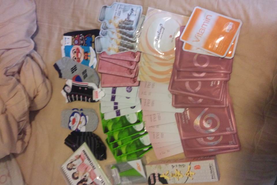 只今、10:55今は暇なんで更新。最近書いてないんで、かこーかな!!!誰かさん、3日間韓国に行ってました。あの人かなり、すごく楽しかったようで、嬉しそうに韓国の写真を見せながらお話してました。笑そして、かなりのお土産を買ってきてくれました画像が横だけど、パックが約50枚、靴下、マッコリ、ピーラー、kARAのカレンダー。かなりの量です。パックの量やばすぎる!!!嬉しすぎる!!!!ありがとー昨日の話。昨日は日野橋で、砲丸練習ー。TNB、あやちゃん、あきこ、むー。結構、TNBやらかしてる笑。でも、砲丸のやらなきゃいけないことはわかったし、それは良かったけど…TNBがあたしの事好きなのはわかる。すごいんだそれが。色々あったけど、やっぱり同い年は無理。笑