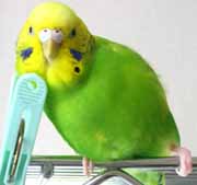 最近のキミちゃん@セキセイはとみにカキカキ星人。メタルラックに挟んである洗濯バサミであよあよーん、自分のケージの針金(前に扉が開くタイプのケージで、その扉を支える針金)でかきかきうっとり、ケージの中につけてあるおもちゃのバードヘッドでごーりごーり。気持ちよくてうっとりとしてる顔とプワっとふくらんだ顔周りの羽が何かに似てるなーと思ったら、ミスドのポンデライオンでした(笑)。さしずめキミちゃんはポンデバードかな?