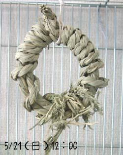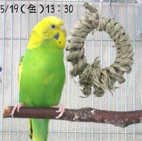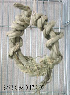 我が家のみんなは明日からペットホテルへとバカンスに出掛けるので、「かじりーず選手権」の中継は本日で一旦終了します。再開は5/30(火)の朝からになりますのでどうか御了承下さい。<途中経過>その1朝の放鳥が終わり、11時頃からキミちゃんはまたかじるかじる!でも輪の外側に巻いてあるロープを齧っているようで、中々フィニッシュに到りません…