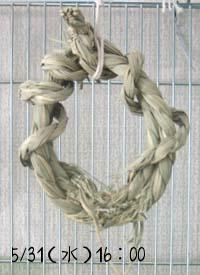 キミちゃんはやっとかじかじ魂に火がつい…た…の?(謎)<途中経過>その1午前11時頃、かじりーずに足を掛けて本日の噛み噛みを開始!外側のいぐさロープをほぐすように齧っているようです。写真は午後13:30の様子。<途中経過>その2午後もキミちゃんは軽めにかじかじしていました。いぐさひと巻き分の3cmほどをかじり切って床に落としてましたよ!写真は夕方のかじりーずの状態です。