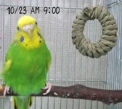 午前11時の時点でキミちゃん・ハルちゃんのかじりーずに特に変化はありませんでした。キミちゃんは放鳥中にラテ@オカメのケージに初めて入り込み、その広さと初めて見たジャングルトーク ラッキーリンク ジュニアのおもちゃに興味を示してちょんちょんとつついたり、ほんの少しごはんを盗み食いしたり楽しそうにしていました。ハルちゃんは昨日に引き続き探検ごっこ。昨日の日記に動画をアップしましたのでどうぞ御覧ください。