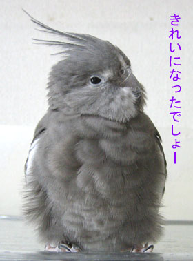 今朝の地震では私の住む場所も揺れ、敏感な桃太@オカメはケージの中でパニックになってしまい、慌てて外に出してやりましたが鼻の上を少し擦り剥いてしまいました。ラテはますます羽が抜け、右の翼は風切羽がスカスカで飛ぶのも大変です。そんな今日、キミちゃん@セキセイは久しぶりに水浴びをしていました。彼女は水浴びをした後はいつも、写真のようなまんまるな目になって「さっぱりしたわー!」というような顔をします。夏前に体調を整えて、がんばって乗り切ろうねー。夏と言えば浴衣。先日渋谷に用があって出掛けたついでにパルコ1内の「ふりふ」にてこんな帯留めを見つけたので購入しました。鳩 …ですがなんかカラスっぽいような(笑)象牙のような質感ですが店員さん曰くラクダの骨でできているそうです。●「鳥ものコレクション」更新しました