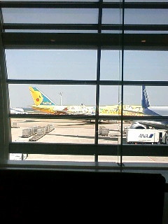 先週末、私はちょこっと一泊二日で北海道まで行ってきました。帰宅した翌日はまたライブの為に渋谷まで出掛けて帰りは午前様。私のいない間は家人が鳥達の世話をしてくれたのですが、先週の初めからちょっと食欲の落ちていたラテ@オカメの食がまた細くなってしまい、今日の放鳥中にたくさんカキカキをしつつ「ちゃんとごはん食べるんだよ?」とお願いしましたが、本鳥は分かってるのかいないのか…甘えん坊過ぎるのも困り物です。その点桃ちゃん@コザクラはお留守番に慣れているので食欲は旺盛・元気いっぱい。下の写真は羽田で見たポケモンジェット。ピカチュウと桃ちゃんはちょっと似てると思います