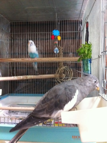 桃太@オカメのケージに忍び込んでちゃっかりごはんを盗み食いする事です。