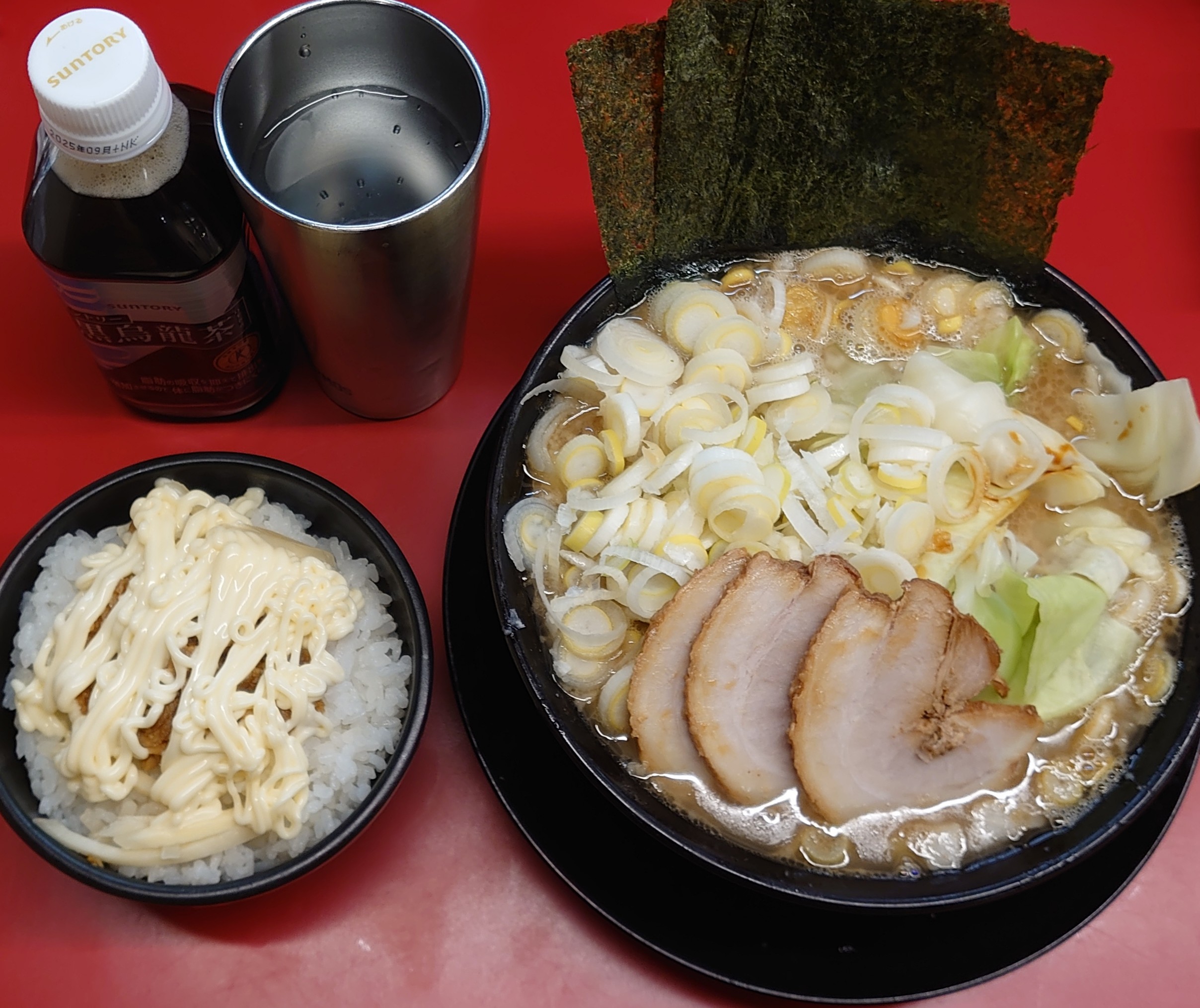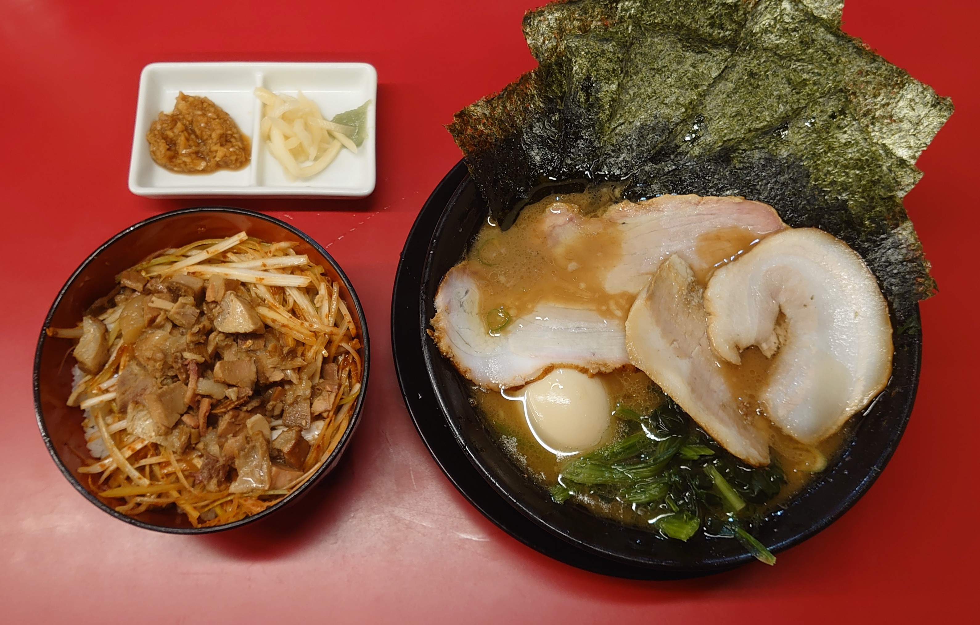 🟨王道家直伝 との丸家 八潮店〒340-0801埼玉県八潮市八條1612との丸ラーメン(柔濃多)ネギ丼(赤)(🧧福引券)タイミングが良くて長椅子に座らず着席仕切り皿で無限にんにく+刻みしょうが↑との丸ラーメン(柔濃多)ネギ丼(赤)🧧↑との丸ラーメントッピングは燻製チャーシュー、豚トロ、豚バラ、海苔8枚、ほうれん草、味玉豚骨×鶏ガラの濃厚家系ラーメン旨味ある醤油ダレ+鶏油がきいて王道家自家製麺に絡んで美味い😋けっこう濃厚なので後半は卓上のラーメン酢でさっぱりがオススメ😋🥛↑味玉↑前回(1/5)の福引券でGETしたネギ丼(赤)有効期限が1/31までなので忘れずにすぐ使おう😋↑ネギ丼(赤)直伝ラーメンもとの丸ラーメンも、デフォルトで海苔8枚もトッピング卓上のマヨネーズをかけて肉と白髪ねぎを海苔で巻くと美味い😋 ↑建物外観最後まで読んでいただき、ありがとうございました。 #王道家直伝との丸家#王道家#との丸家#家系#家系ラーメン#との丸ラーメン#ネギ丼赤#自家製麺#草加流山線#外環#八潮#新三郷#八潮団地#八條#福引券
