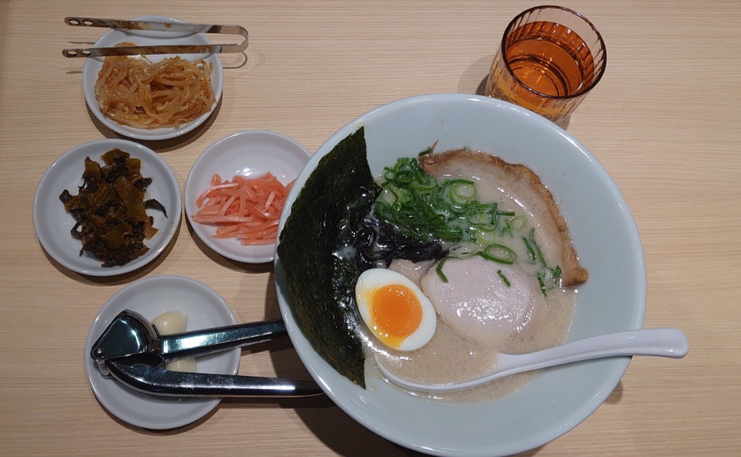 🟨王道家直伝との丸家 八潮店〒340-0801埼玉県八潮市八條1612直伝ラーメン+ライス食券を購入後に着席運が良かったのは、すぐ複数の団体客がきて店内は満席、長椅子も満席、行列になる。店の入口に椅子があるのはそういうわけか🪑🤔水はセルフ式、後でわかったのだが無限にんにくや刻みしょうがもセルフ式です、卓上はマヨネーズ、ラーメン酢、ラーメン胡椒↑人気No.1の直伝ラーメン豚骨+鶏ガラの濃厚家系スープにキレのある醤油+鶏油の効いた王道家自家製麺が絡んで美味い😋画像の黒烏龍茶は店前自販機で購入(店内持ち込み🆗)↑トッピングは海苔×8、味玉、ほうれん草、燻製チャーシューデフォルトで海苔×8枚って凄いですよね😋ご飯がススム🍚😋↑今日はくじ引きサービスがありました。↑ネギ丼(赤)でした。(期限は1月31日まで)↑自販機で購入した商品は店内に持ち込み🆗黒烏龍茶などがあります。↑店舗外観駅からだと新三郷、越谷レイクタウン新田、獨協大学前、草加、八潮が近い最後まで読んでいただき、ありがとうございました。 #王道家直伝との丸家#との丸家#八潮店#直伝ラーメン#家系#家系ラーメン#自家製麺#くじ#くじ引きサービス#福引券#草加流山線#外環#八潮団地#新三郷#越谷レイクタウン