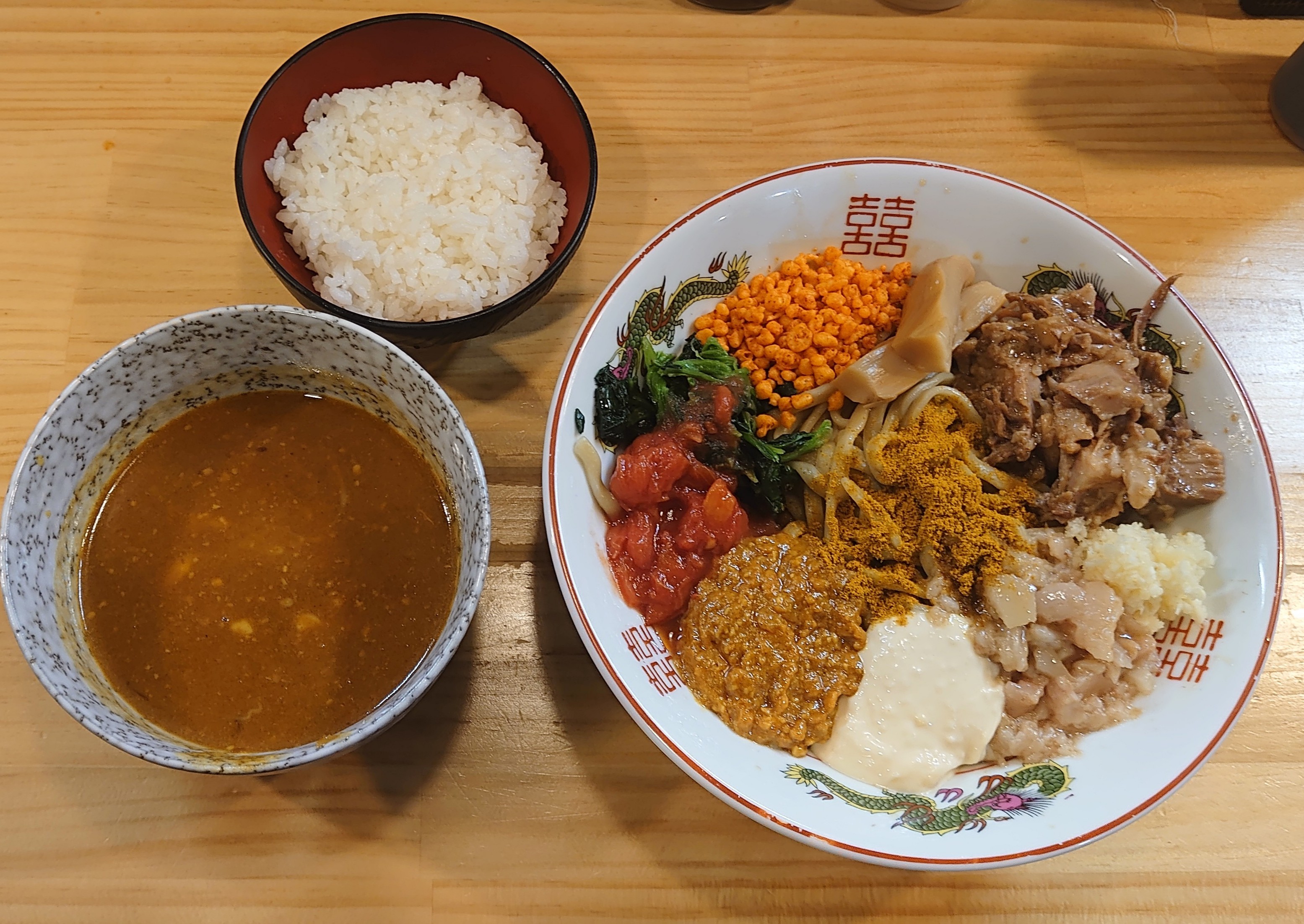 🦅ラーメン鷹の目 西巣鴨店〒170-0001東京都豊島区西巣鴨3-19-9🧀チーズカレー温つけ麺(限定)(3→2)🍚追い飯(50円券) 🗣️全マシ本日STARTの新限定💥🚀松田店長の渾身のスペシャル限定↑チーズカレー温つけ麺(限定)まぜそばでもつけ麺でも食べられる、まぜつけスタイルまぜそばで食べてもカレー味です😋🍛↑チーズカレー温つけ麺デフォルトトッピングカレー、カレー粉、トマト、ほぐし豚、ほうれん草無料トッピングニンニク、アブラ、辛揚げ、ガリマヨこのまま、まぜそばで食べてもカレーまぜそば私はまぜそば7割、つけ麺3割で食べました😋トッピングのメンマは鷹の目西巣鴨店の前の中華蕎麦ジンベエの時と変わらない感じがする、これがまた美味い😋↑チーズカレー温つけ麺のつけ汁↑〆のカレーライスまで堪能したい方は50円券(🗣️追い飯)を購入↑まぜそばのタレ、つけ汁でもカレーライスを堪能できる😋まぜそばのタレにライスを投下すると辛揚げが辛味のアクセントになって、つけ汁に投下すると濃厚なカレー🍛😋↑無料トッピング 参考にして下さい↑店舗外観最後まで読んでいただき、ありがとうございました。 #ラーメン鷹の目#鷹の目#西巣鴨店#限定#11月限定#チーズカレー温つけ麺#カレーつけ麺#つけ麺#中華蕎麦ジンベエ#ジンベエ#明治通り#西巣鴨