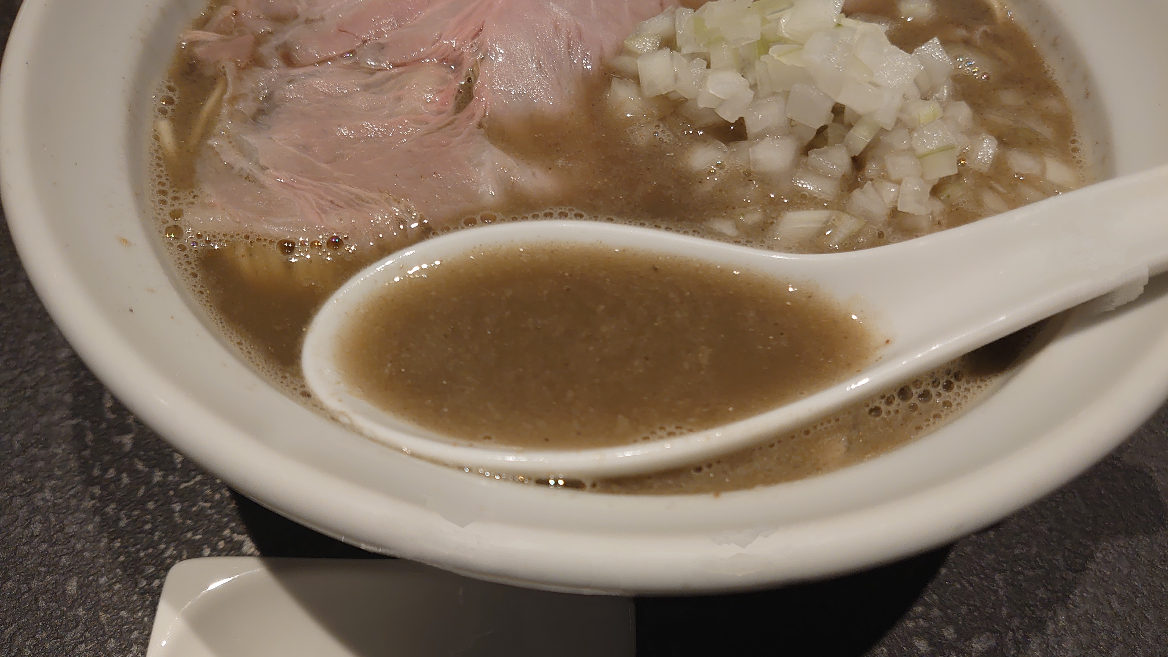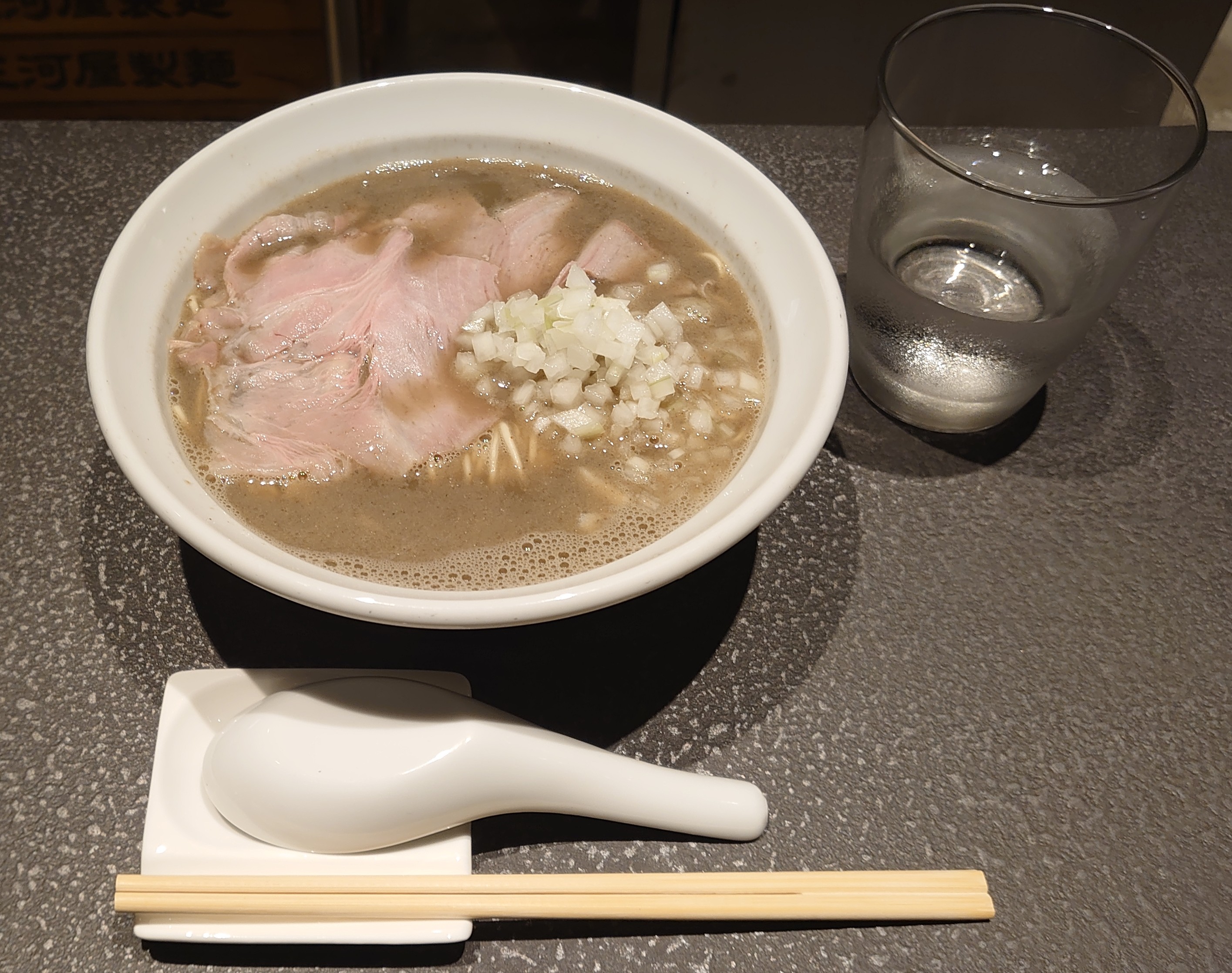 三河屋製麺の低加水中細麺に絡んで美味い😋
