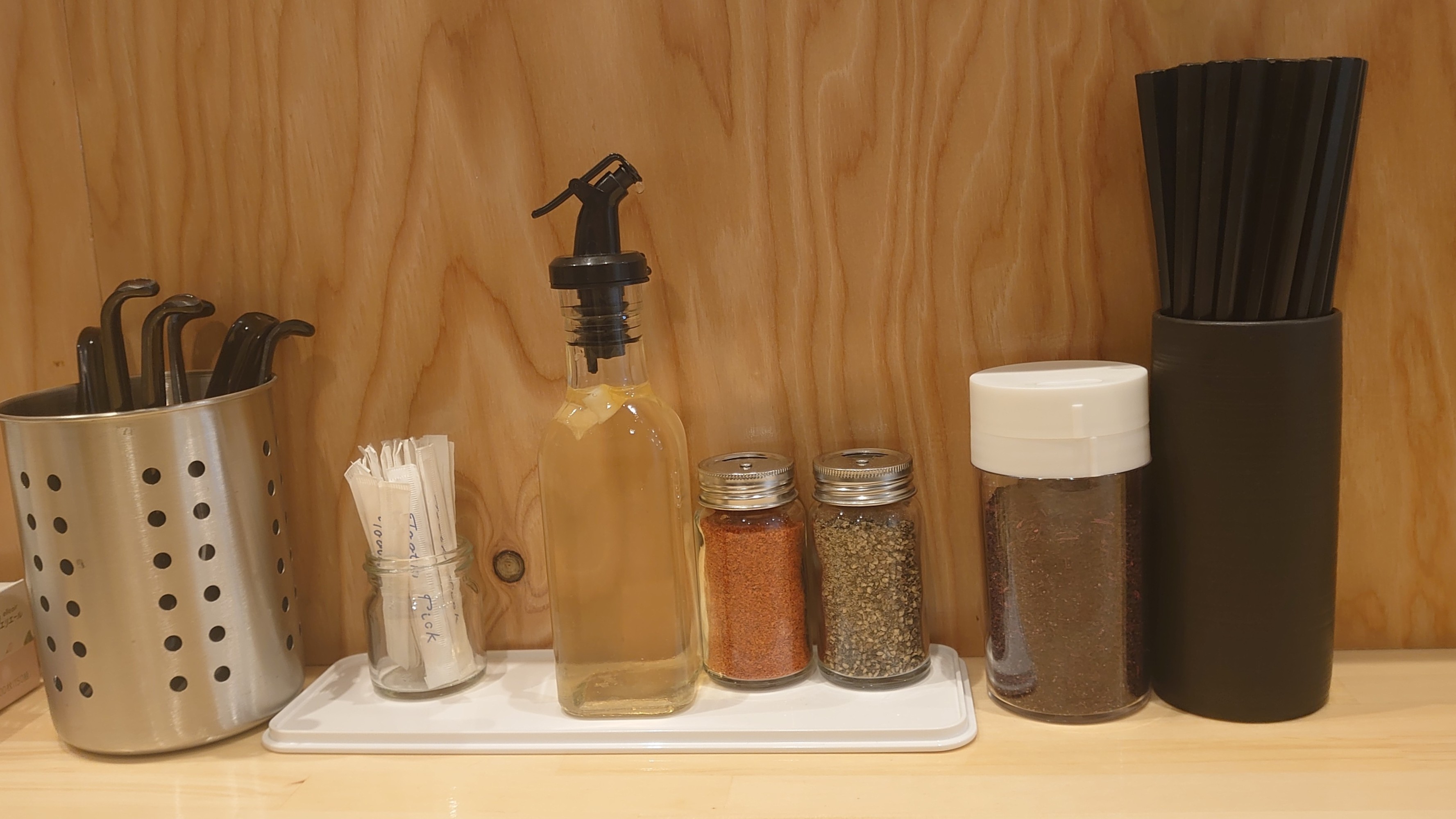 お酢、一味、ブラックペッパー、ゆかり