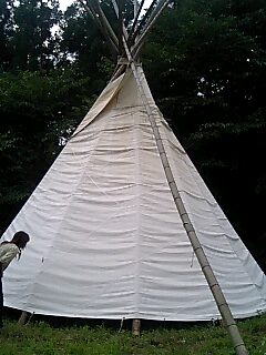 ティピの下に見えるのはユッキー先生。かなり大きなティピ。