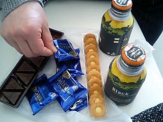 病院の喫茶店でお茶するつもりが閉まっていたので売店でコマゴマ買って移動。