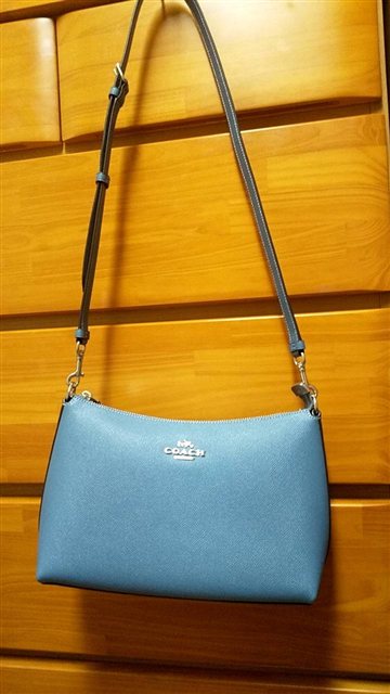 こんばんわ~コーチのショルダーバッグCOACH OUTLET CE584 SVQWPライトミスト今日、届きました注文から2日~早いですね~私は、もうちょい、薄くくすんだ感じの色を想像していて実際の色は、この写真よりもうちょい明るいような濃いような。。。でも、昼間と夜でも色味が違って見える気もしますのでリアルカラーを画で反映させるのは難しいんですが基本、私は青が好きですし、コレはコレですごく良い色で気に入ったんですけど、、、家族の集まりなどがあった時にある程度ちゃんとしたバッグを持って行きたいなぁ~と思ってたのですがこのバッグだと、どんな色の服装にも合うというわけにはいかないかも。。。と心配になったのでここは思い切って、もう1点買うことにしました