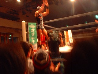 レイザーラモンHGの2試合目はどうなったのか。実はプロレスを生で見るのは初めて。前から3列目ということで行ってみたら、リングからかなり近いと思った。メインイベント前の試合を見ても迫力を感じた。そしていよいよメインイベント。おなじみの「Livin'La Vida Loca」のミュージックで、HGがさっそうと登場すると、会場は大盛り上がり。11月のハッスルマニアと同じウエアだったが、リングにあがった姿を見てびっくり。前にも増して痩せたように見えた。おまけに超多忙で練習もろくにしてないと思うので、まともな試合ができるのか心配だった。相手のアンジョーとKOSHIKARIは、執拗にHGの腰を責め続ける。HGも負けじと腰を振りつつドロップキックで応酬。危ない場面もあったが、見事フォール勝ち。しかし、かなり疲れたのかクタクタになっていた。そのあと、なぜか高田総銃が登場し、HGやいないはずの小川直也を挑発。その言葉を聴いて小川直也がリングに上がってきて、再度場内は盛り上がった。HGは大晦日にPRIDEに出る小川直也に対し、「セコンドをやらせてくださいよ」と言った。これには大爆笑。最後は全員でハッスルハッスルフォーで締めくくった。HGは明日も参戦するそうだが、大丈夫か。