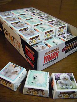 新発売のチロルチョコのモデルは~ルークとボブで~すなかなかいい感じにできあがってます~これなら、売上がグンとのびそうですねと、まぁ~誰でも注文すれば、オリジナルチョコがつくれるんですよねぇダーリンが注文してプレゼントしてくれましたチョコを食べたあとの包み紙は(別売りのキットで)こんな風に、ストラップにしてみたりと楽しめますとりあえずチョコはお友達に配っちゃお~ね~ね~ボクはたべれないのひとつちょうだい