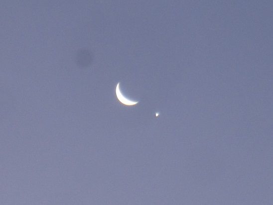 2日は細いお月さまのすぐ近くに金星が。すぐにカメラを取りに行き