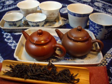 今日は前から気になってたことを実戦することに!茶壺(急須)でどう味が変わるか、、、、久しぶりに昔購入した茶壺を出してきました。今日のお茶は鳳凰単叢(ほうおうたんそう)。茶色とか黄色い茶壺で淹れるのが美味しいと言われています。でもね、茶壺老師は朱泥の茶壺が美味しいと言う、、、、(-。-) ホ゛ソッ2つの茶壺で淹れるのは、とにかく忙しい!同じ要領で淹れなきゃ!って思うから、、、、(^^;; ヒヤアセう~~~ん、はっきりと言う!どっちもイマイチ!(きっぱり!)水がイマイチなのも理由としてあるんだけど、それを差し引いてもイマイチなんだよねぇ~~~。(´ヘ`;)ハァどうも納得できない!今度はもう1つの朱泥の茶壺で淹れることに!この朱泥の茶壺の泥質が一番いいんだよね。これは美味しかった!いやぁ、茶壺によってこうも違うとは!( ̄ロ ̄ノ)ノ話には聞いてたんだけど、実際に自分で試したのははじめて!いい勉強になりました。今まで茶壺老師から聞いて理屈はわかったつもりでしたが、実際に試してみないと、納得できないものですね。茶葉もどっちゃり使用しましたが、それ以上に実りの多い実験でした。