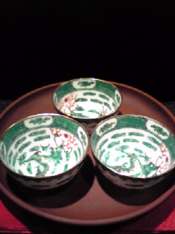 茶壺老師が資料として、送ってくれました。文革時期に景徳鎭で焼かれた「緑彩釉雲龍紋杯」です。上質なカオリンをたっぷり含んだ原料を、成形後に熟達した職人により限界まで薄く削り上げたもので、今のものとは感触、風合いが違います。工夫茶杯もかつてはあったことの資料として、ずいぶん前に入手したとのこと。見てるだけで、幸せになりそうな茶杯です。