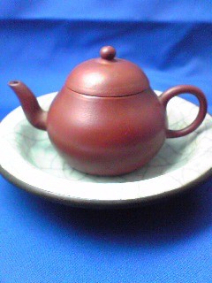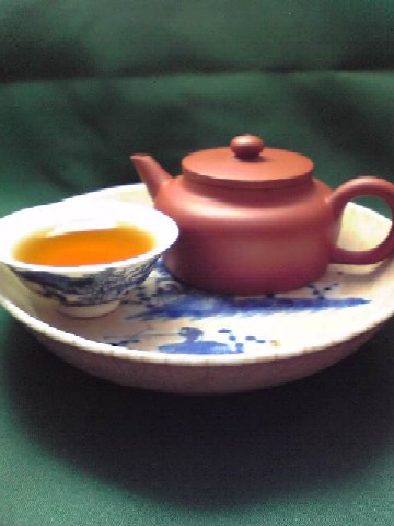今日の茶壺老師メール。一文字蓋水平壺の設えです。民國茶盤に清紫金釉喇叭杯、朱泥一文字蓋茶銚。時代は100年以上の隔たりがあるが、品格はうまく釣り合っている。取り合わせの妙であり、醍醐味でもある。=====================================茶銚(ちゃちょう)とは、、、、急須のこと。その他の別名は急尾焼(きびしょう)、茗瓶(みょうへい)。一般に使われている急須のことで、誰もがよく知っているもの。急須には二つの形があり、横手と後手の2つです。一般に使われている形のものが横手といわれるものである。後手は注ぎ口と持ち手が一直線上にあるもの。茶銚という場合は後手のものを指す。横手の急須は炉にかけられることがあるが、後手のものは直接火にかけることはない。流によって、後手だけを使用するところもある。大きさについて見ると、横手のものが大きく、後手のものは小さめ。急須は、煎茶道具の中でも重要なものであり、古来数々の名品といわれるものがある。中国から渡って来た朱泥の急須(後手)で、万豊順記、三友居などの名品、恵孟臣、孟臣などと珍重されるものがたくさんある。日本のものでも、木米、道八、竹泉などの名品がある。