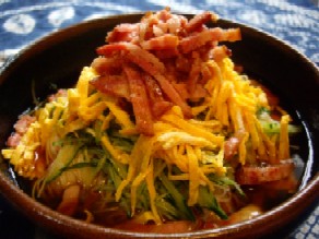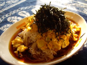 猛暑日:東京は35.6度関東甲信、東海地方などが梅雨明けし、全国的に夏本番を迎えた19日、気象庁によると、山梨県身延町37.2度▽群馬県館林市36度▽東京・練馬35.6度--など各地で最高気温35度以上の猛暑日になった。--------------------------いつの間にか梅雨明けしてたんだね。昨日は向こうの空は真っ暗で、知らない間に雨が降る、、、、ってカンジだったから、、、、(-。-) ホ゛ソッやっと、梅雨明けしたなぁ、、、、=====================================一の飯冷やしたぬきうどん完璧飲みすぎの私、、、、ヾ( ̄_ ̄;)ォィォィ昼過ぎまで使い物になりませんでした。(´ヘ`;)ハァ使い物になりはじめたら、お腹が空いた!でもね、何もない!(○`ε´○)ぶーっ仕方ないので、冷凍うどんを使って、、、、美味しかった♪ヾ(@⌒¬⌒@)ノ ウマヒィ=====================================二の飯そうめんさっぱり食べたい!うどんの次は素麺です。(;^_^A アセアセ・・・トッピングたくさんで、なかなかよかった!