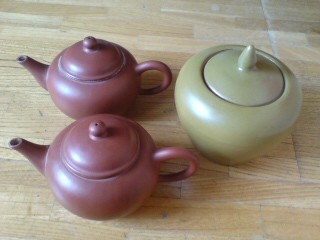 ずいぶん前に注文しておいた一文字蓋水平壺が届きました。新しい茶壺ということで、烏龍茶で煮込む作業から。茶壺老師に教えてもらったやり方で煮込んだのですが、烏龍茶を新しい茶壺で淹れるのは、結構面倒で、時間がかかる作業でした。ε-( ̄、 ̄A) フゥー煮込みが終わった茶壺がこれ。写真ではあんまりかわりないんだよねぇ~~~(´ヘ`;)ハァいいカンジで色が変わってるんだけど、、、、(-。-) ホ゛ソッそれにしても、思ったよりもたいへんな作業でした。前に集玉壺を煮込んだときは、もっと手抜きだったから、、、、大切に愛でて、育ててやると、茶壺も答えてくれるのかな?