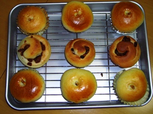 こんばんは。今日は暑かったものの良い風が吹いてきたので、割と快適に過ごせましたでス。これを書いている今、せっせとパンとケーキを焼いているのでスが、途中で足りない材料が出てきて、遅くまで開いているスーパーに行って来たのでスがね、帰って来てから買い忘れを1つだけ思い出し、また出て行く羽目になってささくれ子……。なもので、どっとお疲れあこ茶でス……。さて、ただいませっせと焼いているパンでございまス。まだオーブン稼動中でスが、とりあえず焼けたものを。りんごちゃんあんぱんと、シナモンレーズンロールでス。マフィン型のおかげか、なかなか愛らしく焼けたかと思いまス。後はケーキが焼けるのを待つのみでス。数日ぶりにまともに作っているので、頭がオーバーヒート寸前、あこ茶でス。本日の癒し中山式快癒器、最近腰痛で辛いもので、今日、満を持して購入。何故ならね。よく行くドラッグストアから、2個まで1割引の葉書が来たからでス結構効きまスよ、コレ