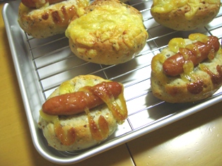 こんばんは。未だに貧血気味のあこ茶、ここ数日特に朝が辛いでス……。ダンナさんのお弁当と朝ごはんを作り、送り出した後は正直燃え尽きていまス……orzが、何もかも投げ出したくても代わりにやってくれる人がいるはずもないので、休み休みでもおうちの事をこなし、ブー太郎くんの電王ごっこに付き合ってまス……。しかし本当にきつい時はブー太郎くんに断りを入れてからその辺に転がっていまス……。(その間遊んだりDVDを観たりして待ってくれていまス)申し訳ないなあと思う反面、チビながらも優しいブー太郎くんに感謝するあこ茶でス……(〃^人^〃)さてさて。倉敷から帰って来てはや数日。ホームベーカリーで焼きっぱなしの食パンを焼いていても、パン生地作ってのパンを作る気力がなかなか出なかったあこ茶。しかしでスよ。折角色々パンの材料を買って来たと言うのに、それを放置プレイ(ゲフン)とはこれいかに。これじゃいかーん!と言う訳で昨日作ったのが、定番ソーセージクッペとフロマージュでス。パン生地には先日買って来た製パン用五穀を混ぜてまス。そのせいか、こね上がった生地から香ばしい匂いがしましたようちなみに今日の朝ごはんに頂いたのでスが、パン自体がとっても香ばしくて美味しかったでス久し振りのパン生地の感触、オーブンから漂うパンの焼ける匂い、やっぱり良いなあと思うあこ茶でス