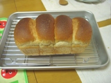 こんばんは。あこ茶ちょっちだけお疲れ気味でス……。今日はブー太郎くんちょっちだけ早帰り、マア予想通りお友達と遊ぶ約束をしてきましたでスよ……。今日はA太くんとその妹Aリちゃん、SOくん、後公園に行ったら目の前に住んでいるSュンちゃんも出て来たので、子供達5人で走り回っていましたよう付き合うのは正直疲れまスが、元気いっぱい遊んでいる子供達を見ているのは好きなあこ茶でスさて、数日ぶりに角食を作りましたでス今日はみかさんのレシピを参考に。今回の本はタイムリーな事に角食のレシピが充実していて、1.5斤分の分量も書いてあるのがあこ茶としては嬉しい限り。成形も友人パパさんに教えてもらったものではなく、本の通りにやってみましたでスよ。そしてついさっき焼きあがったのがこちらで~スなかなかどうして良い感じに焼きあがったかと思いまス~あまりカクカクし過ぎず、ほど良い感じおまけにもんのすごく良い匂いがしまス……。明日これをどう食べようかしらんと嬉しいお悩み、あこ茶でス