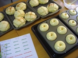 こんばんは。この間の日曜日、お出かけの前に掃除をしている間、ダンナさんにお願いして自転車屋さんに行ってもらって、ブー太郎くんの自転車の補助輪を外して、スタンドを付けてもらったのでスよ。何故ならね。仲良しのSュンちゃんやSOくん、そらモウ補助輪ナシですいすいと乗っている訳でスよ。そして先日遊んでいた時SOくんに、「何でブー太郎くん自転車の補助輪外さないの?」と言われましたでスよ……。要するに、2人に触発されたのでスねブー太郎くん……。以前あこ茶が、「もうそろそろさ、自転車の補助輪外して練習する?」と聞いた時には「嫌や!」と言っていたのに、やはり友達の一言と影響は大きいでス……。良い事も余計な事(苦笑)も覚えてきまスが、刺激されて、成長して、良いお友達に恵まれている事、本当に嬉しいなあと思うあこ茶でス……さて、明日の朝ごはんとおやつの為に、夜ブー太郎くんが寝静まってからパン作り。ベーコンを巻き込んで渦巻状にしてマフィン型に入れて、焼く前にチーズをのせてのベーコン&チーズパンと、先日のバザーの際のクッキー生地の余りを冷凍保存しておいたのを出してメロンパンメロンパンのクッキー生地を型でつけてあるのは、以前ミオマーマさんがしていたのをそのまんま真似っこさせて頂きました~ちょっちブサイクちゃんになってしまったのには目をつぶって下しゃい……メロンパン、明日はブー太郎くんの奴がちょっち早帰りの日なので、友達と遊ぶ約束をしてくる可能性大と言う訳で、子供達が食べると言うならばご進呈しようと思っているあこ茶でス……。