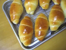 こんばんは。今日は3日ぶりに青空が広がりましたでスよ。洗濯物もよく乾いて、気持が良かったでス。ブー太郎くんの運動会が6日にあるのでスが、この調子でお天気が続いて欲しいなあと切実に思うあこ茶でスさて、今日は何とかバターを確保出来たと言う訳で、久々にバターロールを作りましたでス。バターたっぷりで良い匂い、ふんわり焼きあがりましたでスそしてやはし溶き卵を塗るとそれらしくなって良いでスね♪明日の朝はこれにソーセージとレタスを挟んでいただこうと思っているあこ茶でス