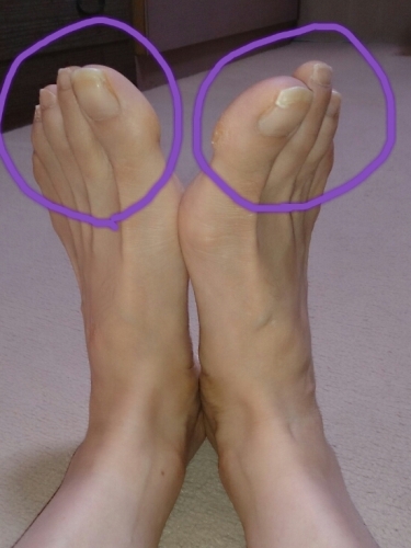 膝を伸ばして足を投げ出し、踵を付けて足先を足首から自分のほうに引いてみてください!どんな足の形になりますか?上の写真は4ヵ月前の私の足の状態です。自分では足先をまっすぐ手前に引いているつもりですがこんなふうに丸印の箇所が開かないで重なってしまったいます・・・下の写真はMP関節を動かすトレーニングをしてここまで開くようになりました。でも右足の丸印の指はまだしっかり動きません。MP関節ってどこ??使わないと途切れてしまう神経そこで神経のお話です 末梢神経とは・・・体の末端と脳とを結ぶ通信網 脳や脊髄から体の隅々にまで張りめぐらされた末梢神経は、体性神経と自律神経に大別されます。体性神経とは体の動きにかかわる神経で、感覚神経と運動神経があります。 目や耳や皮膚などを使って、見たり、聞いたり、触れたりして集めた情報は、感覚神経を通って、脳へ伝えられます。それらの情報は整理され、今度は脳から指令が出されて、運動神経を通って手や足など体の必要な部位に伝達されるのです。足の指は意識して動かすようにしていないと上の写真のように動かそうと思っても動かなくなってきてしまいます。動かなければ血流も悪くなるので毎年どんなに気を付けていても悩まされる 「し・も・や・け」今年の冬はなんとしてもしもやけを作らないように今からしっかり動かしてがんばります。ちなみに私は年齢が上がればいろいろ衰えて動かなくなっていくものだと思い、雑誌で足の指を動かす記事が載っていて実際自分が動かないのは年齢のせいだと決め付けていました。しかし、義母82歳が私よりしっかり足の指が動くのを見て年齢ではないと実感!!26歳も年上の義母に負けていてはいけません!!足の指が動かないあなた!がんばってください(*^_^*)MP関節を動かすトレーニングもお問合せくださいね体でお困りの方、お気軽にご相談くださいLINEからでも大丈夫です姿勢が悪い、肩こり腰痛、足の浮腫み、眼精疲労などなど体のお悩みは老廃物の蓄積?それとも骨の歪み?ボディーケアなかむらのHPご覧ください!