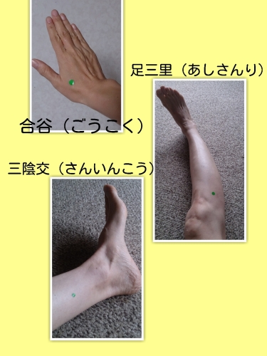 暑かったり寒かったりと不安定な陽気ですね自分の体調は自分で管理できるように頑張りましょう耳鼻科のドクターに漢方薬を処方して貰って以来東洋医学に興味がありました東洋医学とは。。。 ~陰陽~陰陽とは自然界のすべてのもを相反する2つの性質の相互関係としてとらえる概念で東洋医学の基本となる考え ~五行~五行とは万物は地球を構成する「木・火・土・金・水」のいずれかの特性を持っているという考えを人体にあてはめたもので五行も東洋医学の根幹をなす考えチェックしてみましょう当てはまる項目の□に印をつけてみてください 【木】□目が疲れやすい□涙がよく出る□無気力になりやすい□顔の血色が悪い□酸っぱい食べ物が好き□怒りっぽい□めまいが怒りやすい□便秘になりやすい□爪が弱い□叫ぶように話す 【火】□味覚が弱い□舌が白っぽい□汗っかき□顔の血色がよい□苦い味が好き□よく笑う□動悸がする□手のひらがほてりやすい□不安感がある□すぶやくように話す 【土】□食欲がない□口内炎ができやすい□唇が荒れる□顔色が黄色っぽい□甘いものが好き□心配性□寝つきが悪い□疲れやすい□便秘や下痢をしやすい□歌うように話す 【金】□鼻がつまりやすい□涙もろい□皮膚が弱い□顔色が白っぽい□辛いものが好き□トイレが近い□肩こりがある□風邪をひきやすい□悲しそうに話す 【水】□耳鳴りがする□唾液がよく出る□怖がり□顔色が黒っぽい□塩辛いものが好き□口が渇く□足が冷える□腰痛がある□顔がむくみやすい□うなるように話すチェックが一番ついた体調になっています自分でできることに次のような食品をとるように心がけてみましょう【木】の体調の人は・・・枝豆、ブロッコリー、ほうれん草、ニラ、ピーマン、キャベツレタス、キウイ【火】の体調の人は・・・小豆、人参、唐辛子、トマト、苺、柿、スイカ【土】の体調の人は・・・大豆、生姜、とうもろこし、みかん、カボチャ、なめこ、サツマイモレモン【金】の体調の人は・・・白いんげん、豆腐、大根、ジャガイモ、たまねぎ、リンゴ、ナスバナナ、米【水】の体調の人は・・・黒豆、ゴマ、昆布、椎茸、ごぼう、玄米、ひじき、舞茸、きくらげ面白いですよね・・・そして東洋医学といえばお灸!お灸の歴史は約三千年前、薬草の宝庫たる中国北方に発祥以来、東洋医学、漢方療法として現代まで継承されるお灸の効果は1.血行がよくなる2.白血球が増える3.免疫力を高めるこんなツボを教えてもらいました 合谷【ごうこく】風邪のひきはじめや目、鼻、歯の痛みなど首から上の症状に効果的。ほかにも肩こり、ストレスなど万能のツボともいわれています。お灸体験にはまず、この合谷でためしてみることをおすすめします。 手のこうを上にして親指と人さし指の間のくぼみを押え、痛みのあるところ、気持ちのいいところ 足三里【あしさんり】病気予防、体力増強以外にも足のつかれ、むくみ、胃腸の症状にも万能養生のツボ。ヒザのお皿の下のくぼみから指4本分下にさがった向うずねの外側にあります。 三陰交【さんいんこう】消化器、肝臓、腎臓などの働きを助けると共に女性特有の症状には欠かせないツボです。 足の内側のくるぶしから指4本くらい上の、スネの骨の内側のくぼみにあるツボ。足の冷えにもいいということと婦人科系の手術をしていて自分の身体の弱点だと思っていることとズボンをめくれば手軽にできるということで時間があるとお灸やってます何だかいい感じなんです足先が冷たくならないんですちょっといいかも「お灸女子!!」(*^_^*) せんねん灸 オフ ソフトきゅう 竹生島 / せんねん灸 / お灸 温灸★税抜1900円以上で送料無料★...価格:1,913円(税込、送料別)