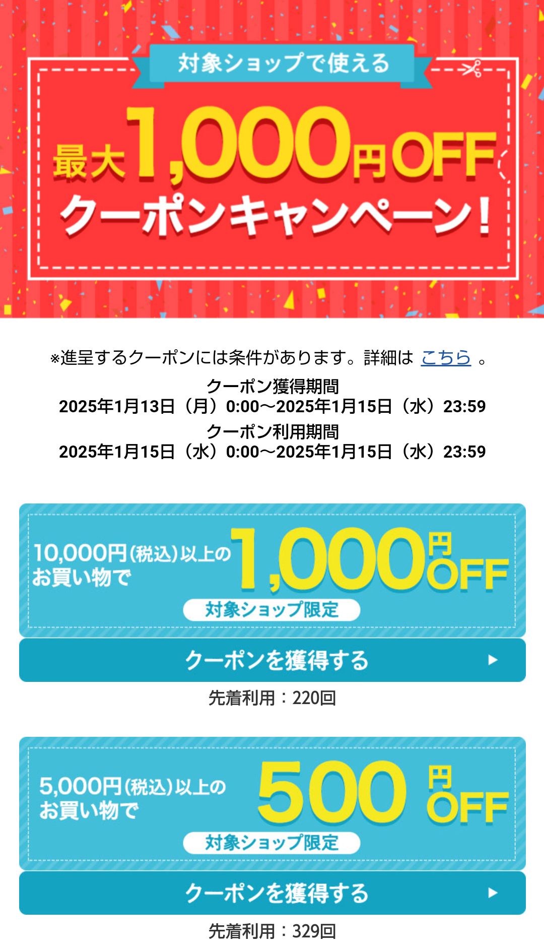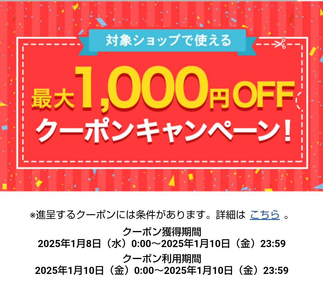 対象ショップで使える最大1,000円OFFクーポンキャンペーン!!