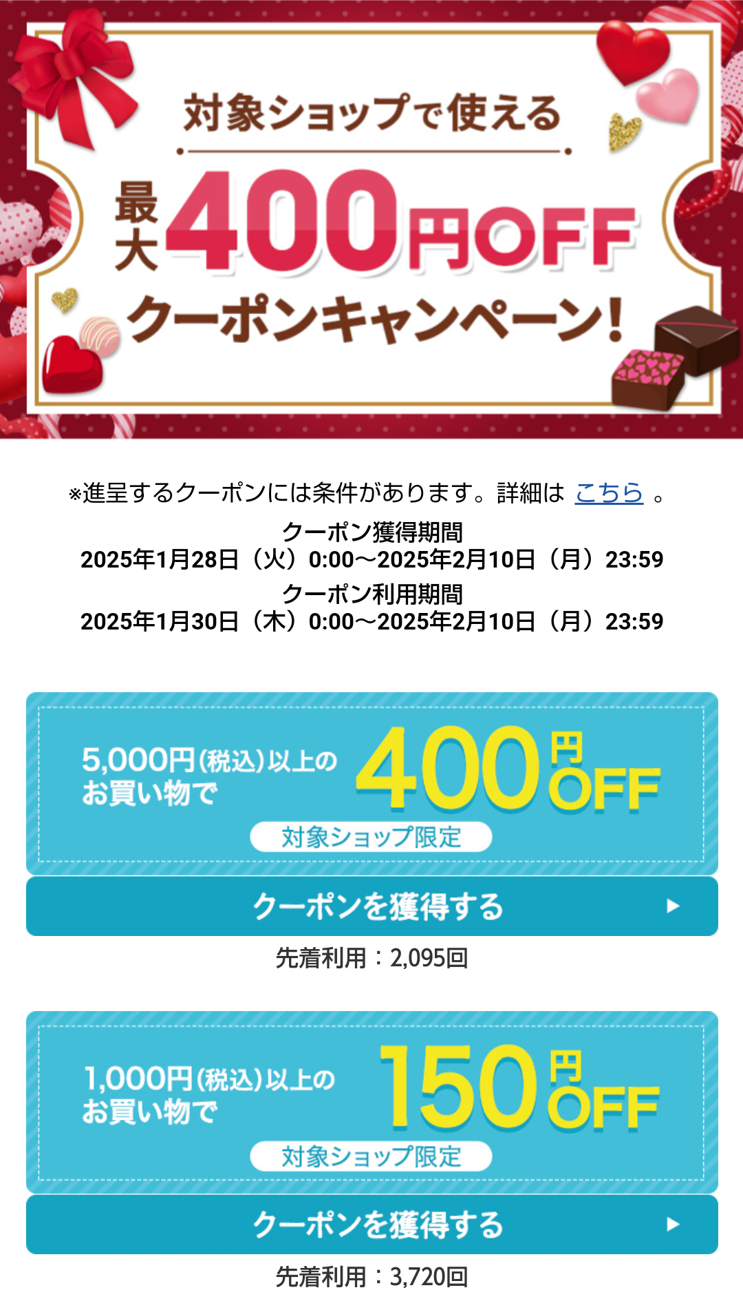 対象ショップで使える最大400円OFFクーポンキャンペーン!!