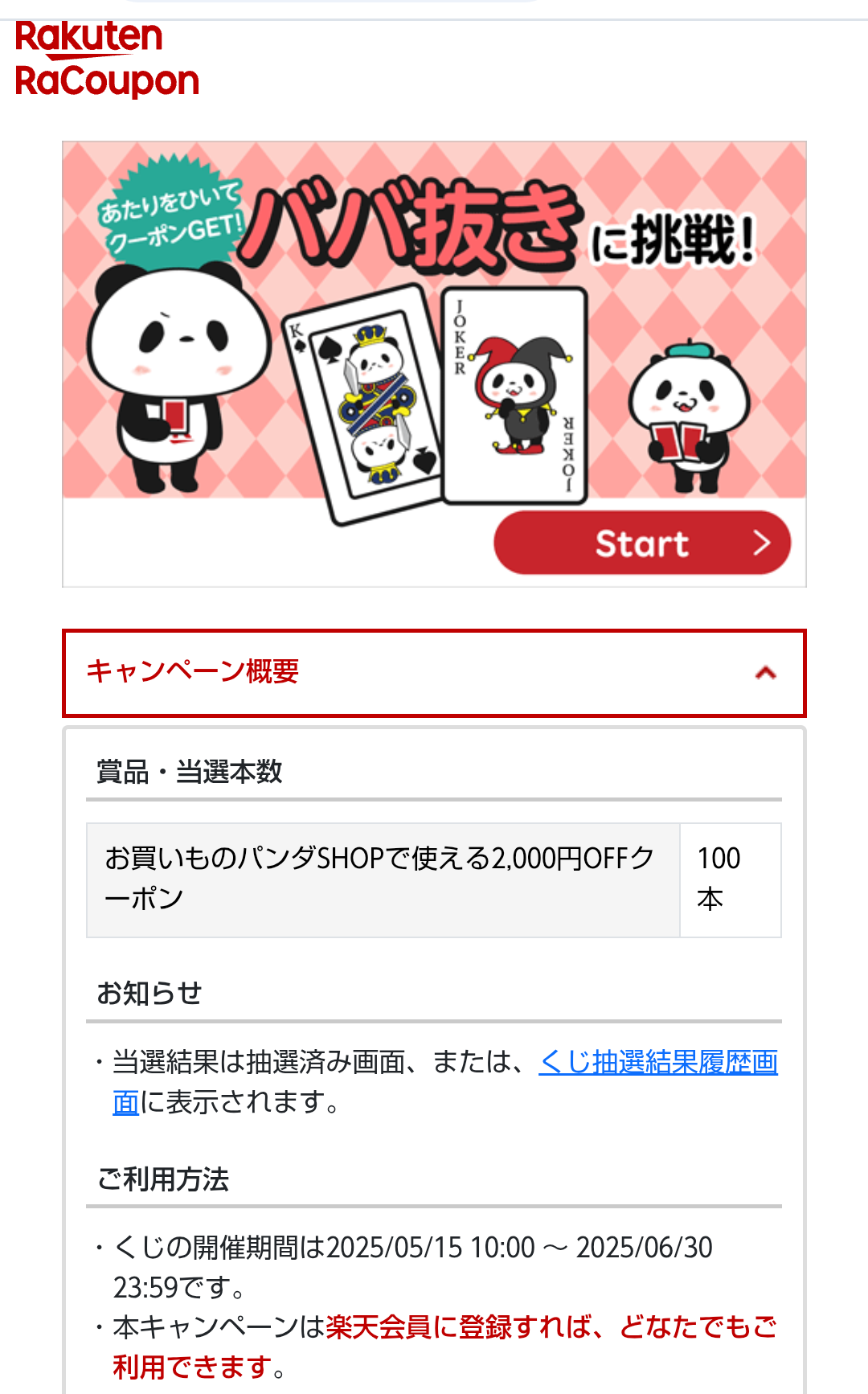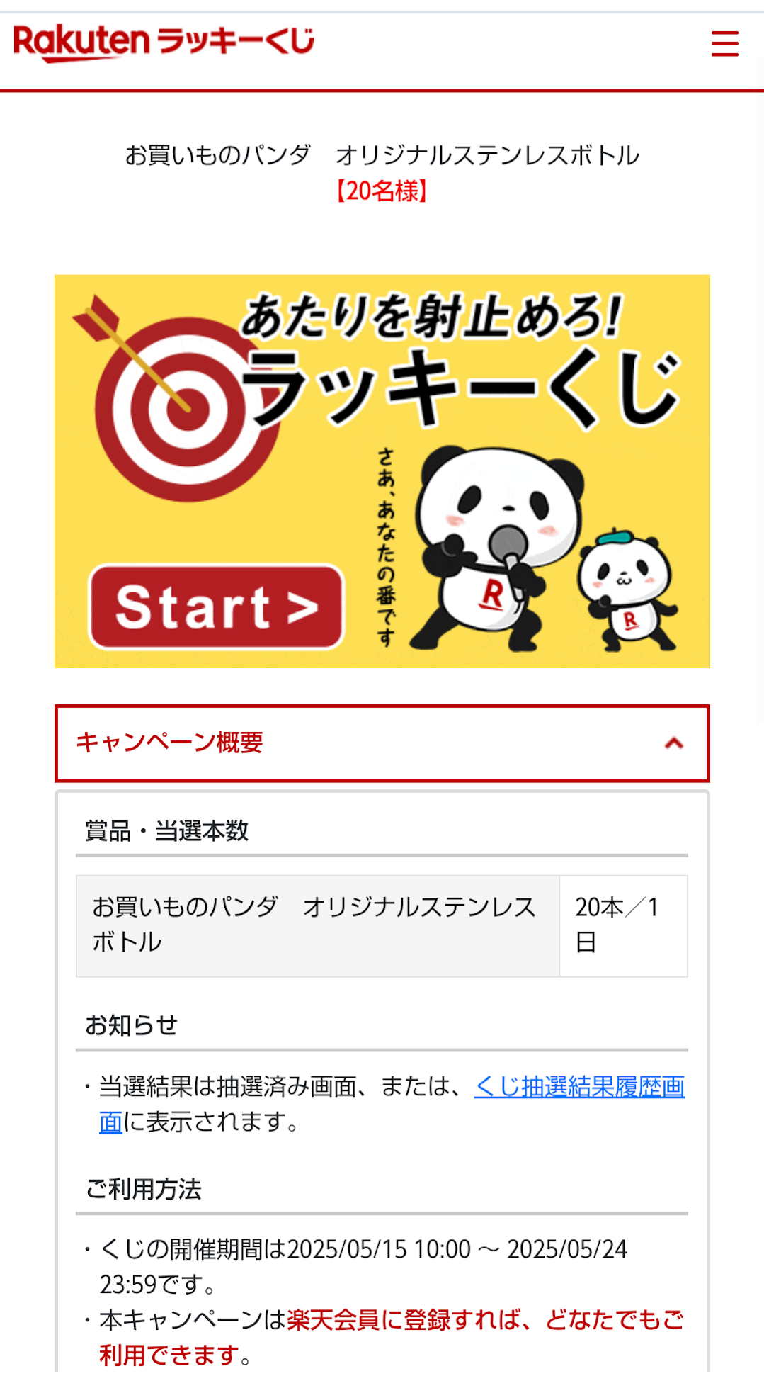楽天証券_お買いものパンダSHOPグッズ引き換えクーポンくじ
