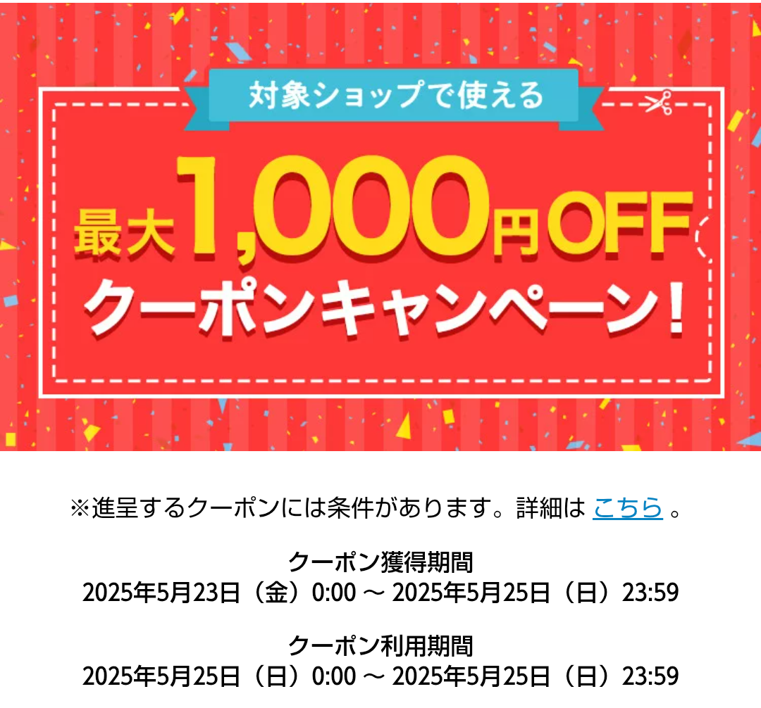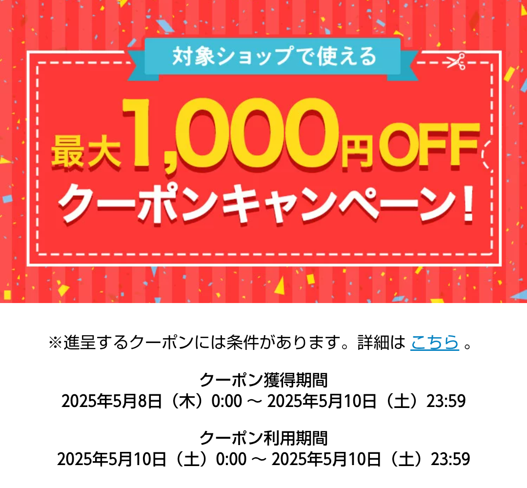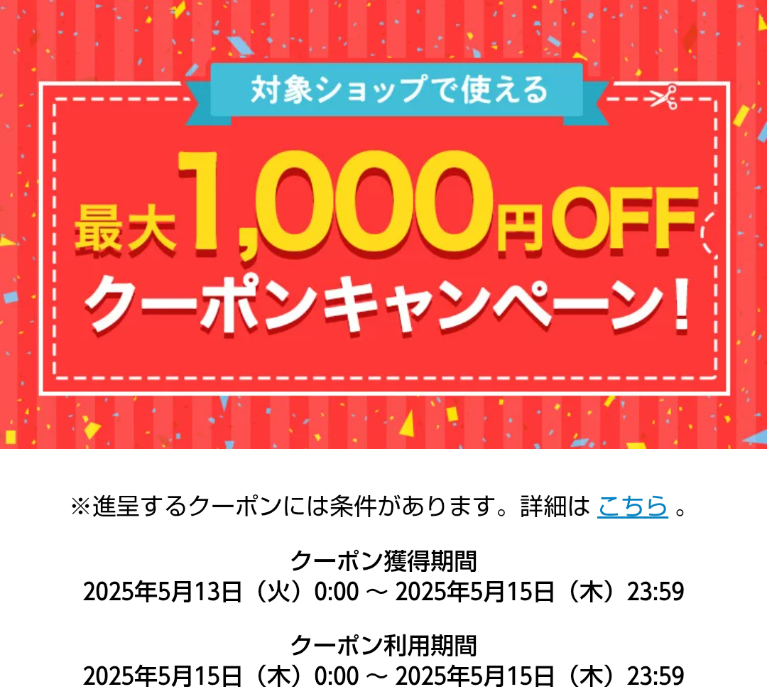 対象ショップで使える最大1,000円OFFクーポンキャンペーン!