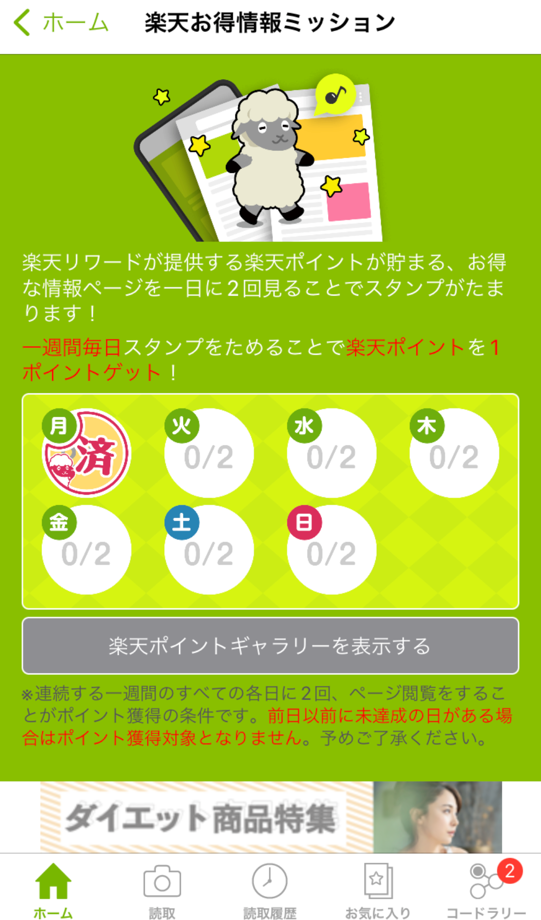 ※「ポイントを獲得する」ボタンを押すと広告が表示されます。